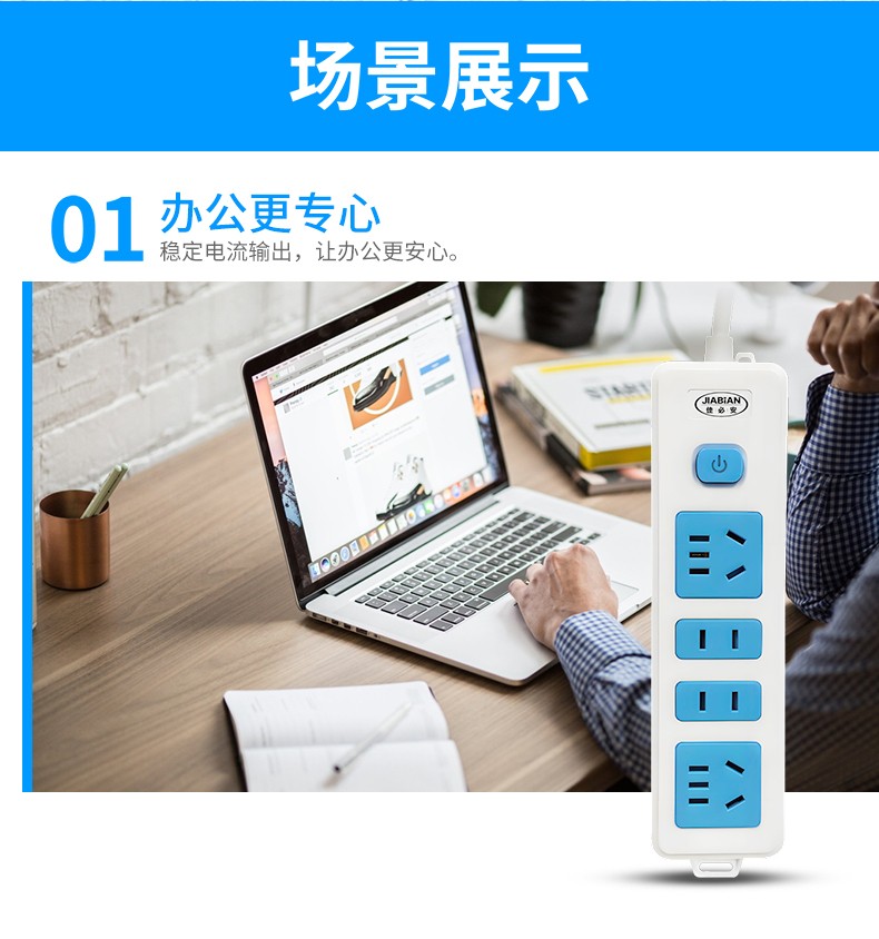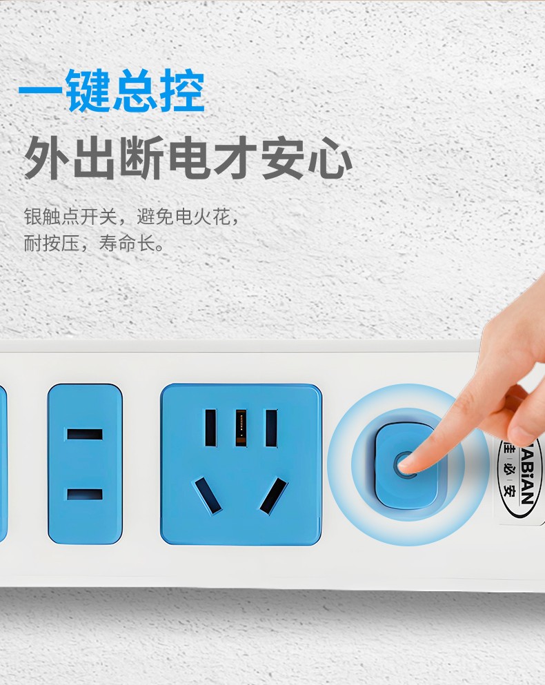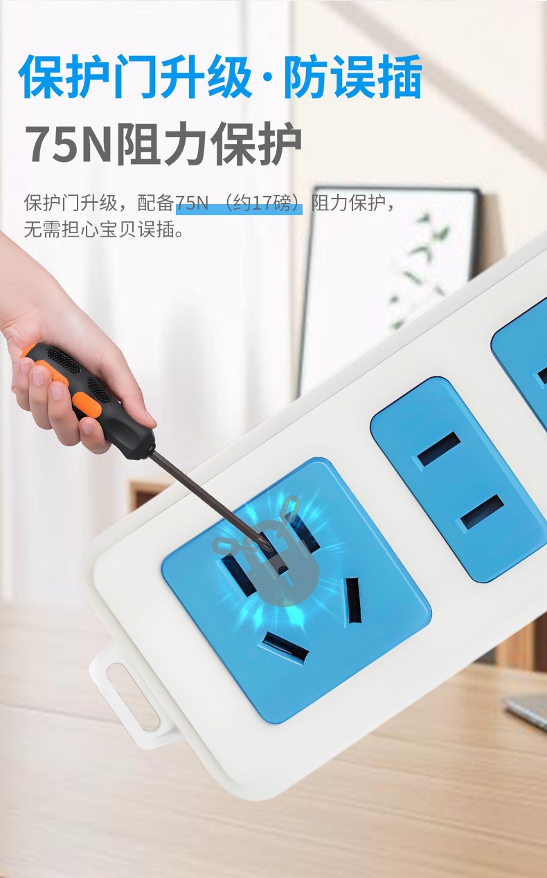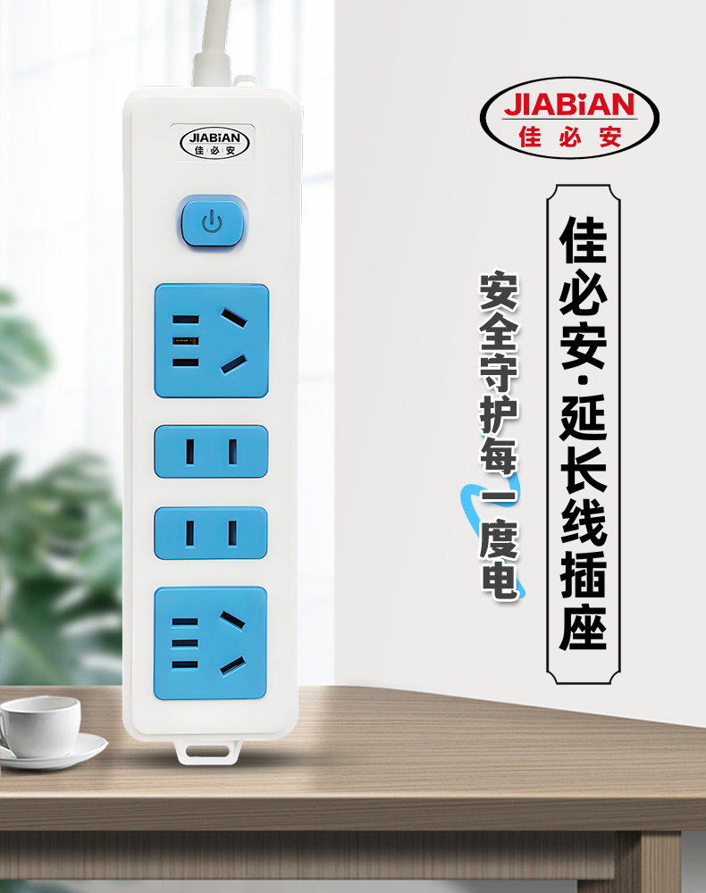 品牌:佳必安型号:JBA-532名称:延长线插座外壳材质:PP面板:白PP蓝PC保护门:尼龙插套固定件:PP指示灯:有开关:有安全门:有额定功率:2500W
