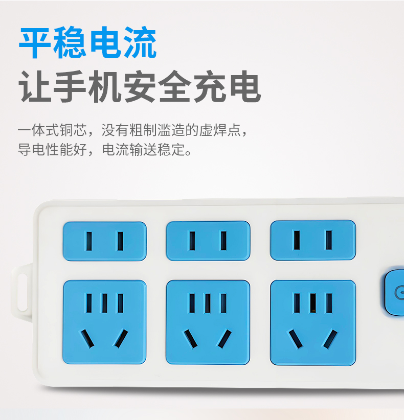 额定电流:10A额定电压:250V插孔孔位:6线芯直径:1mm²全长:1.8米/2.8米/可定制3C认证:有
