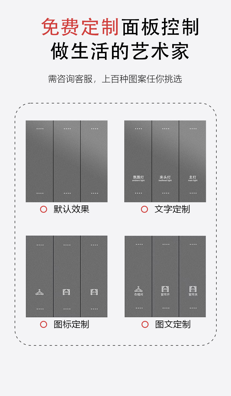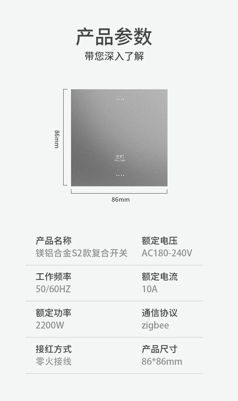 名称:铝镁合金S2款-竖款-4开(复合开关)